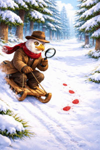 Detektiv Adler braucht unsere Hilfe! Er war in den Winterferien und hat an einem Abend mit seinen Freunden zusammen ein Käsefondue gegessen. Als er nach Hause gehen wollte, entdeckte er blutige Spuren. Und auch ist ein Freund von Detektiv Adler bis jetzt noch nicht gefunden worden.